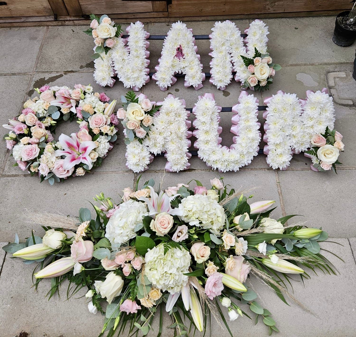 We are sending love to you at this difficult time. All of our funeral flowers are made bespoke to you, we will work with you to create personal, special tributes with the colours and flower choices you have in mind.